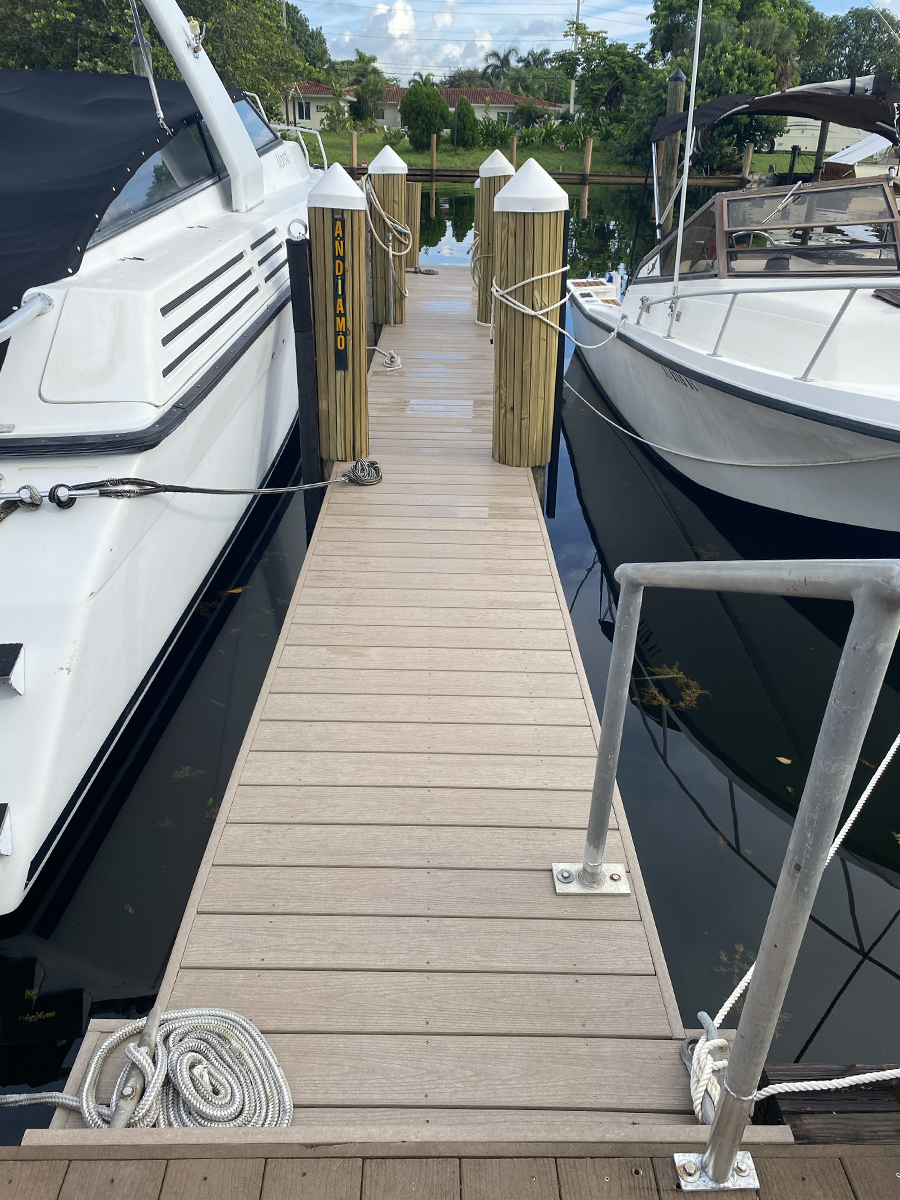 This Hydros Marine Construction marina facelift project in Pompano Beach, FL removing damaged finger piers and replacing them with new Owens Corning WearDeck material is coming along nicely!