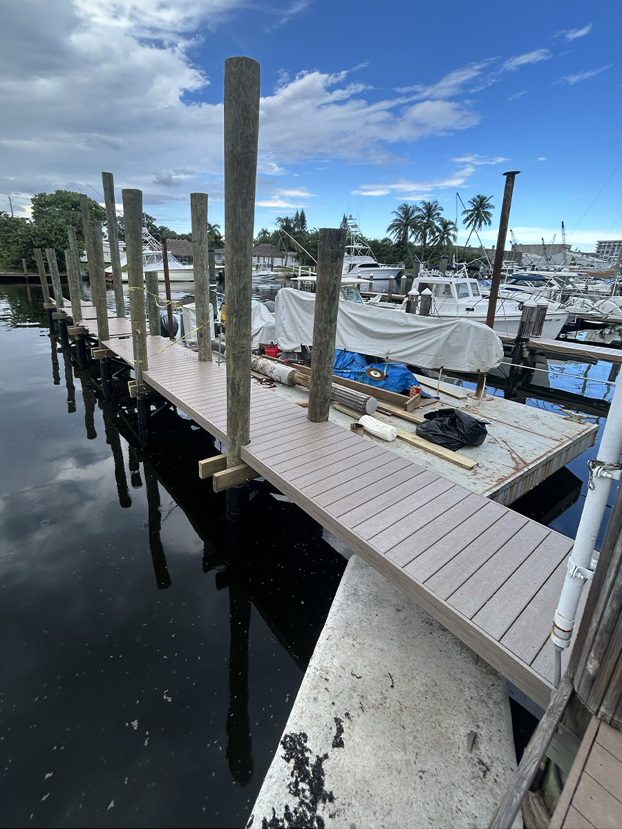 Another beautiful day in Pompano Beach, FL working on this marina facelift project removing damaged finger piers and replacing them with new Owens Corning WearDeck material with the Hydros Marine Construction crew!
