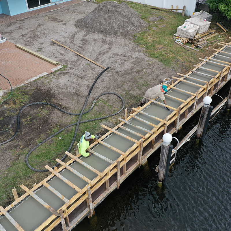 Hydros Marine Construction pouring another beautiful seawall cap up to the Broward code of 5.0 NAVD88 right here in Fort Lauderdale, FL.